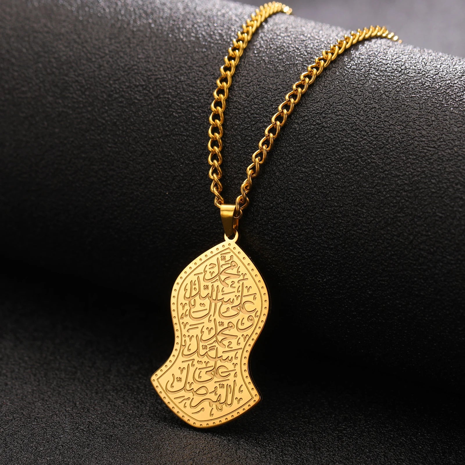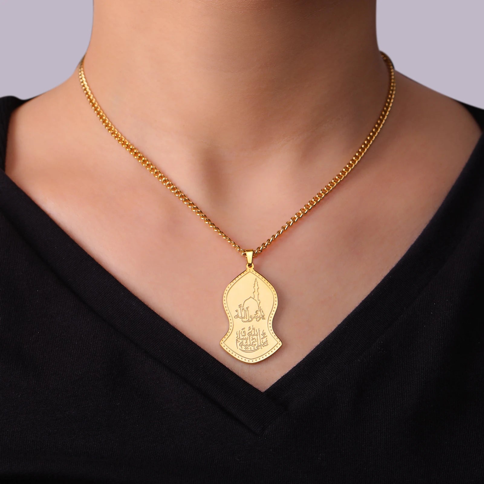 L'union de la tradition et de la dévotion. Ce pendentif unique reprend la forme historique du Nalain Shareef (la sandale du Prophète ﷺ), symbole d'humilité et d'attachement à sa Sunnah. Au cœur de ce symbole est gravée la calligraphie complète de l'Ayatul Kursi (Le Verset du Trône).